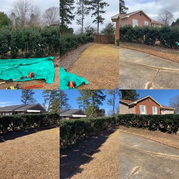 Mowing, Edging, Trimming, Blowing, Leaf Raking, Leaf Removal, Hedge/Bush Trimming and Removal, Crepe Myrtle Pruning, Small-Medium Limb Removal, Pine Straw / Mulch / Flower / Rock Bed Installation and Maintenance, and Spring / Fall Clean up.